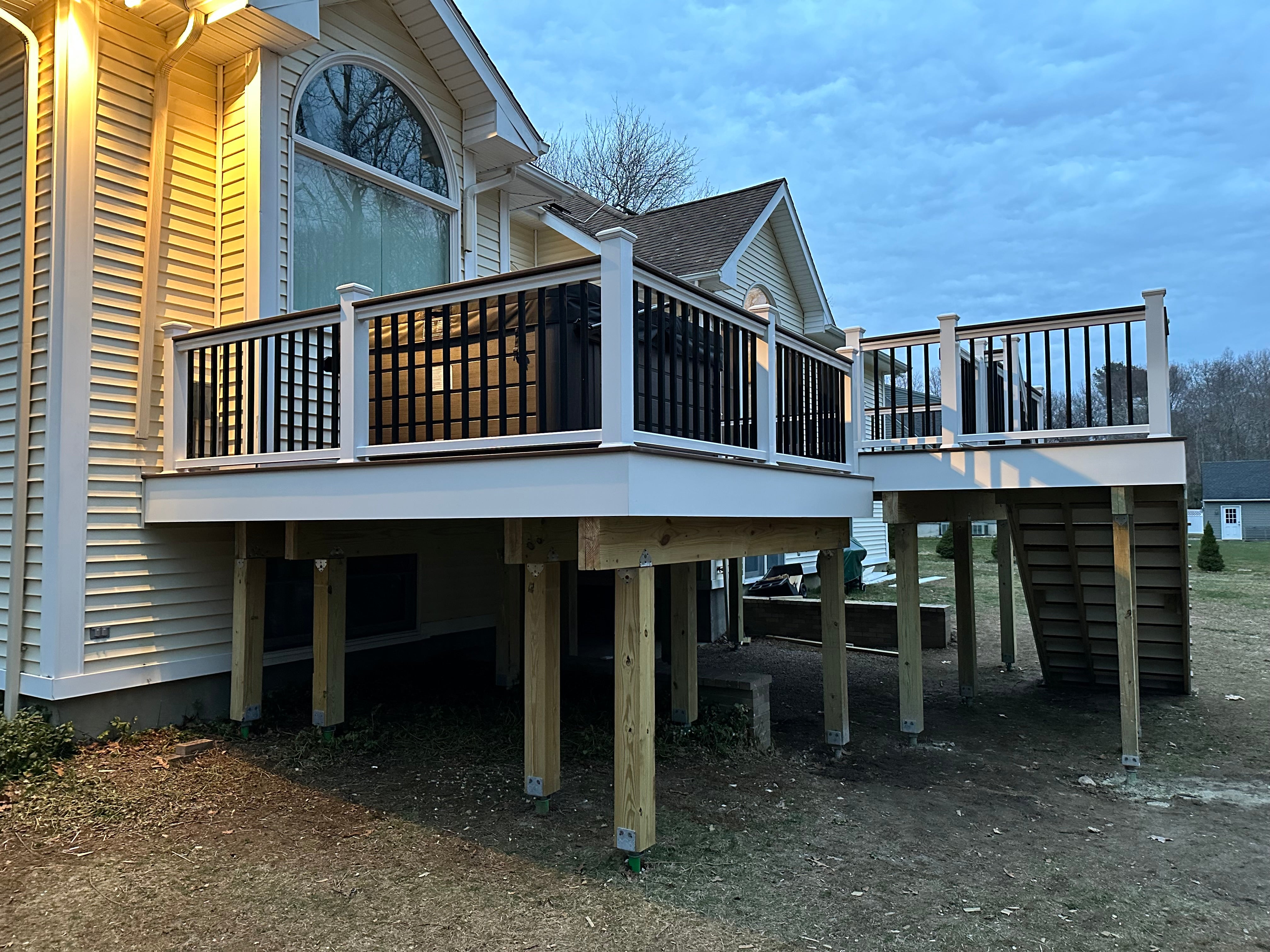 At Family Hearth & Patio, we specialize in the design and custom construction of high-quality decks using premium materials including TimberTech, Trex, Ipe hardwood, and pressure-treated lumber. Whenever possible, we use Techno Metal Post helical piles—a superior foundation system that provides unmatched stability and long-term durability. Whether you’re looking for a low-maintenance composite deck or the natural warmth of hardwood, our expert team is here to bring your outdoor vision to life. We offer free on-site consultations and detailed quotes, and financing is available for qualified customers, making it easier than ever to invest in the perfect deck for your home.