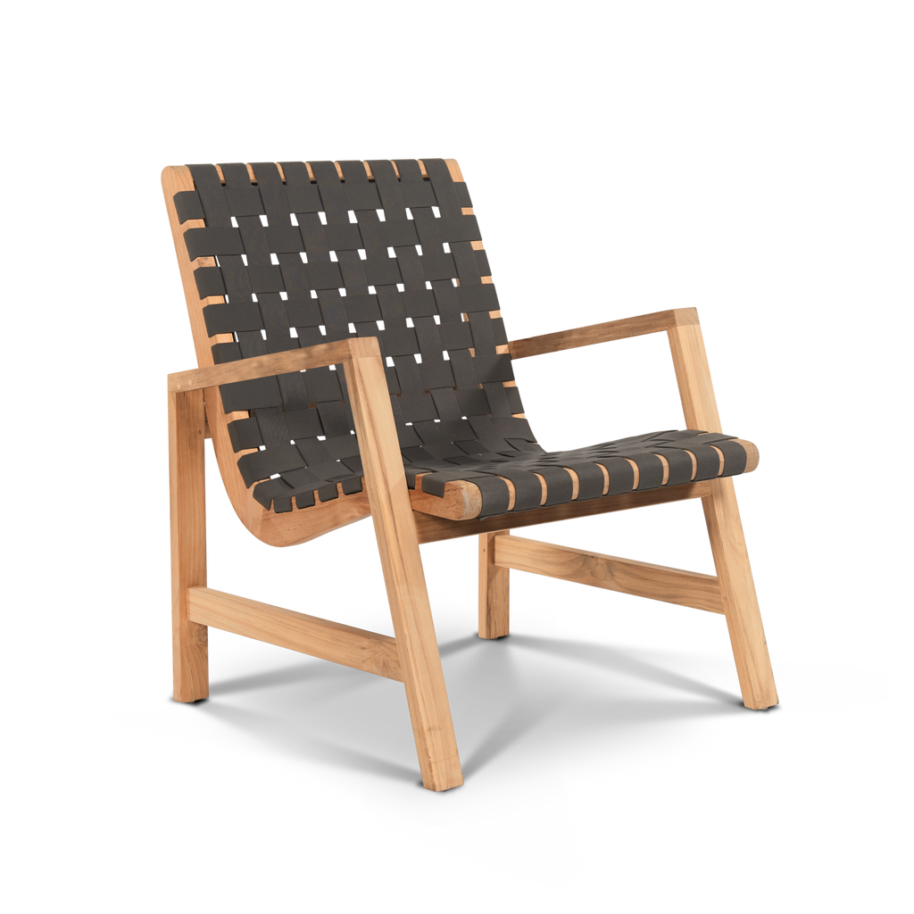 The Aero Chat Chair is designed to fit small patios, by the pool, or pulled up around a fire. The premium teak frame is combined with weather-resistant polyester straps for long-lasting comfort.