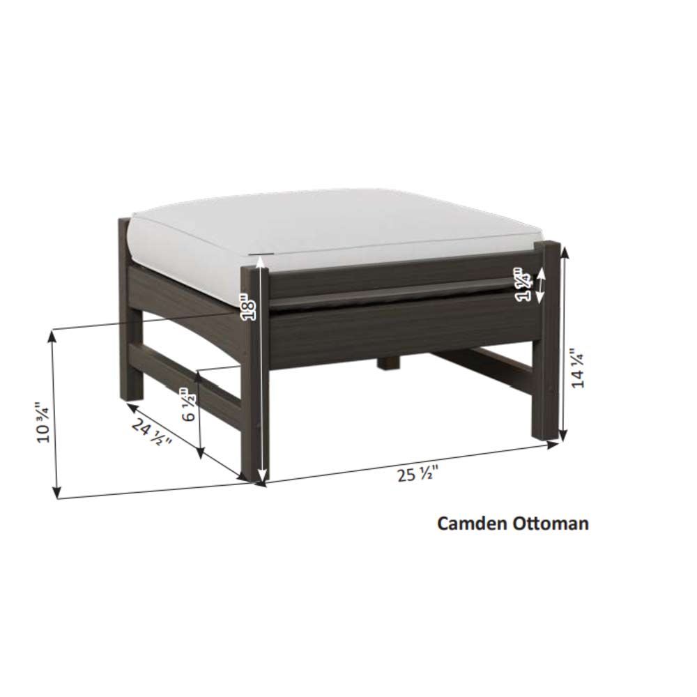 The Camden Ottoman CO2513 by Berlin Gardens seamlessly blends classic and contemporary design elements to bring an elegant and sophisticated touch to any outdoor setting. Crafted with PolyTuf™ Lumber, this collection offers dense, durable, and virtually maintenance-free furniture that won't crack, fade, or rot over time, ensuring its longevity in various climates, including intense sun, snowy winters, and coastal winds. To enhance comfort and practicality, the collection features cushions made with quick-drying Polyurethane foam and wrapped in moisture-wicking Dacron, making it a perfect choice for both style and relaxation in your outdoor oasis.