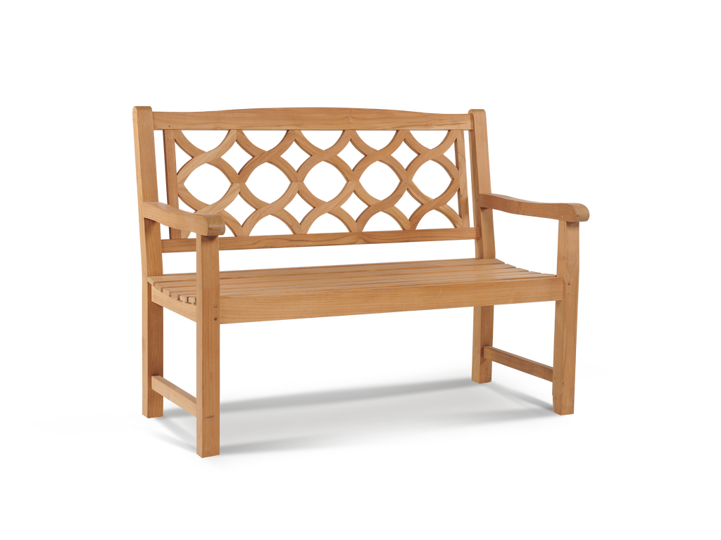 The Chichester Bench features a unique woven back and curved slated seat made from premium teak, forming an iconic design that will never go out of style.