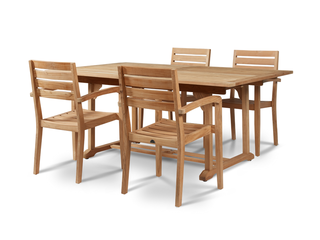 The Dalton Extendable Table features a traditional trestle base and a self-storing leaf that can extend the table to accommodate eight to ten people. This table can be paired with any of our dining chairs to suit the size and style of your outdoor living space.