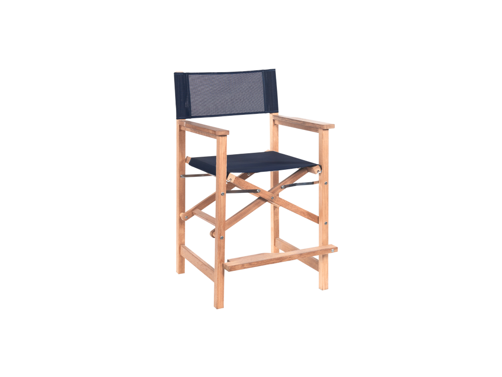 The Director Counter Height Set is designed for narrow balconies and is a perfect addition for today's bigger outdoor kitchens. The chair features the same sturdy folding frame made from premium teak and a durable seat and back sling for long-lasting comfort. This set will last for many years and become your family's favorite.