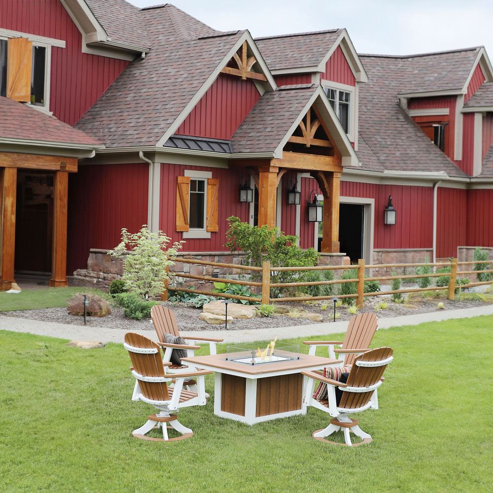 Beautiful and durable, the Donoma 42" x 54" Rectangular Dining Fire Table (DRFT4254D) by Berlin Gardens will help you light up the night! Made for use with a propane tank, this fire table will create ambience and wow factor in your favorite outdoor space. Donoma's clean edges, rustic, wood-like look and versatile frame design give it a unique visual appeal, while sturdy, all-weather construction ensures lasting performance across the seasons. Whether you're looking for a refreshing pop of color, relaxing earth tones or minimalist basics for your next patio upgrade, this outdoor fire table collection is sure to impress at your next gathering. Constructed with PolyTuf™ Lumber, one of the highest grades of poly lumber on the market, this piece is guaranteed to last. This patio fire pit can accommodate 6 people.