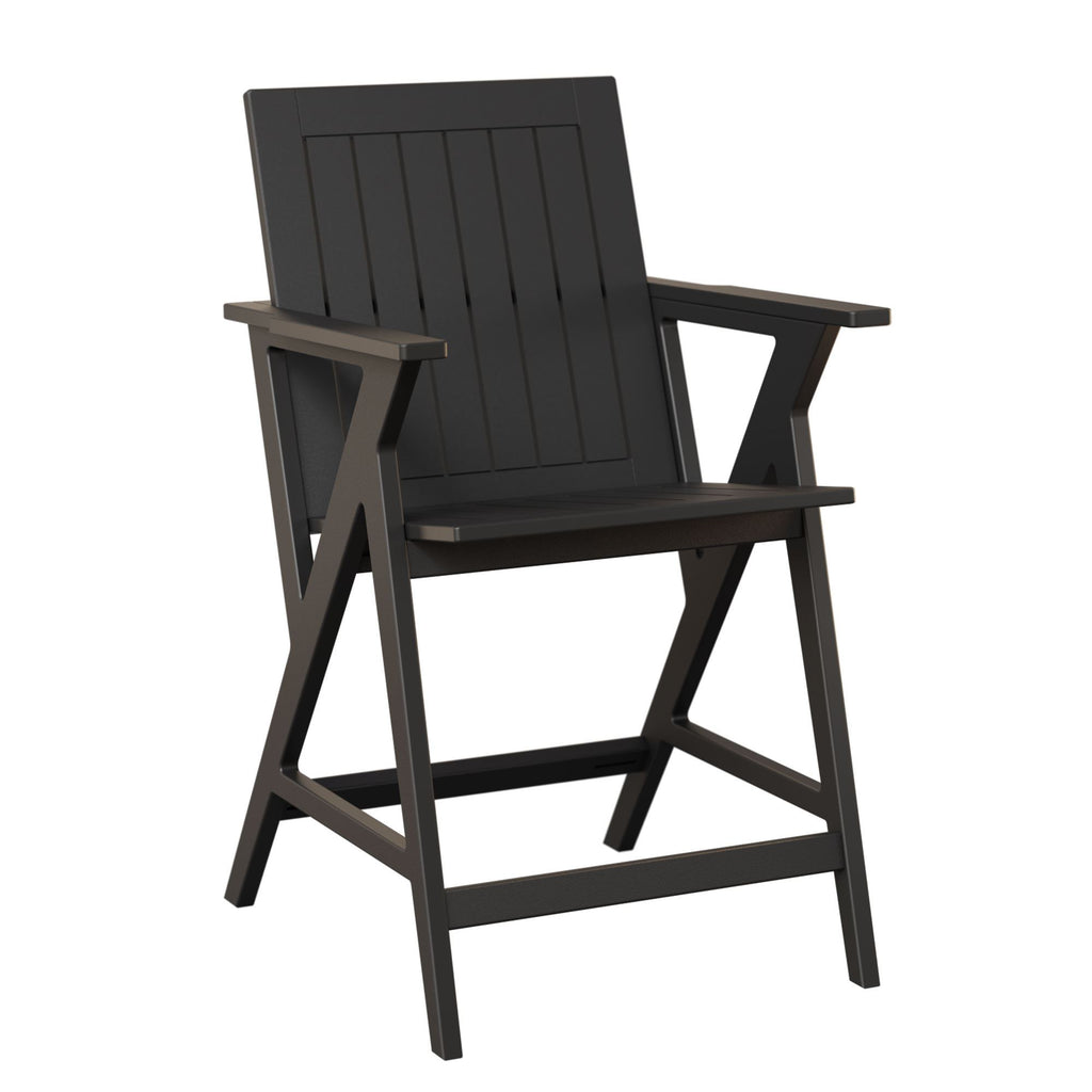 The Kinsley Counter Arm Chair KCAC2541 by Berlin Gardens is part of a premium outdoor furniture line renowned for its exceptional durability and all-weather resilience. Crafted from PolyTuf™ Lumber, which consists of 95% recycled plastic, this furniture is virtually maintenance-free and resistant to cracking, fading, and rot. It's designed to withstand various climates, including harsh sunlight, snowy winters, and coastal winds. With UV protection and color infusion into the lumber, there's no need for painting or waterproofing. BPA-free and handcrafted by Amish artisans in the USA, the collection boasts top-notch quality. The cushions are made for comfort and practicality, featuring quick-drying Polyurethane foam, Dacron wrapping for moisture wicking, and Sunbrella fabric with a 5-year fade warranty. The use of chrome-plated stainless steel fasteners and corrosion-resistant aluminum support pieces ensures longevity and style for years to come. The collection offers an enduring blend of eco-friendliness, comfort, and craftsmanship, making it an ideal choice for those seeking long-lasting and stylish outdoor furniture solutions.