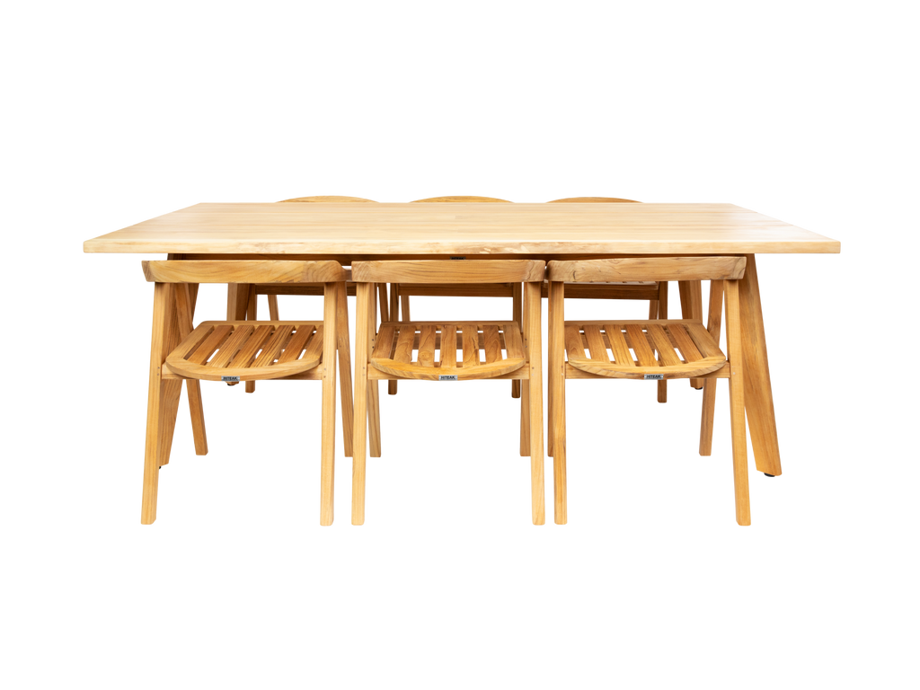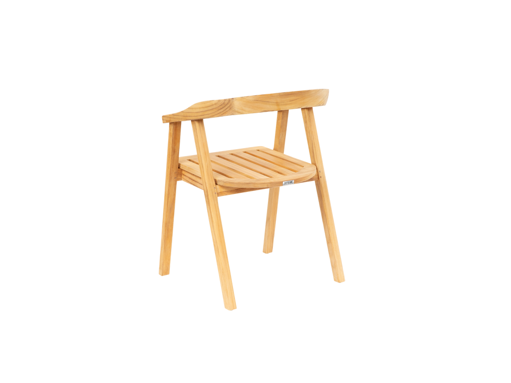 The La Costa Dining Armchair features a smoothly curved back and angled back legs. This unique chair is made from premium teak cuts, combining refined design and detail with comfort.