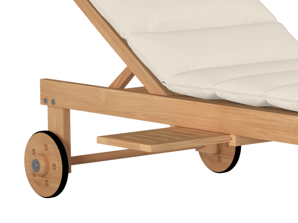 Relax in style with the Lance Sunlounger. With open slats to prevent pooling, wheels for easy moving, and a slide-out shelf to hold your drinks, this lounger is perfect as an accent for your patio or in groups around the pool.