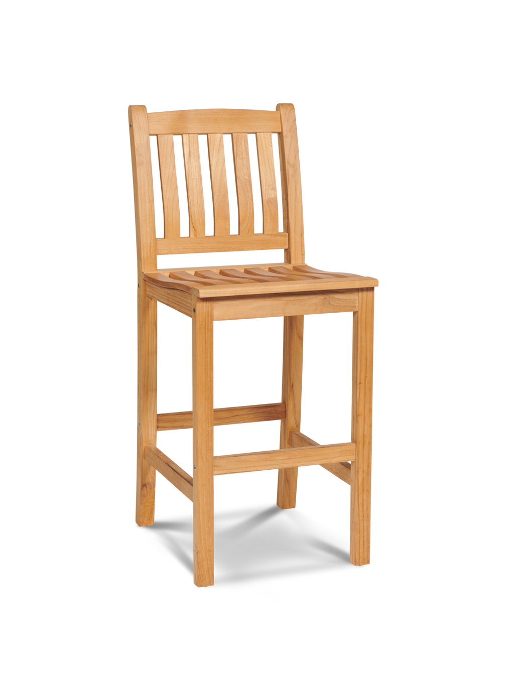The Oasis Bar Chair is made with substantial cuts of premium teak, a perfect balance of strength and classic design. This chair is ideal for outdoor kitchen spaces and bar areas.