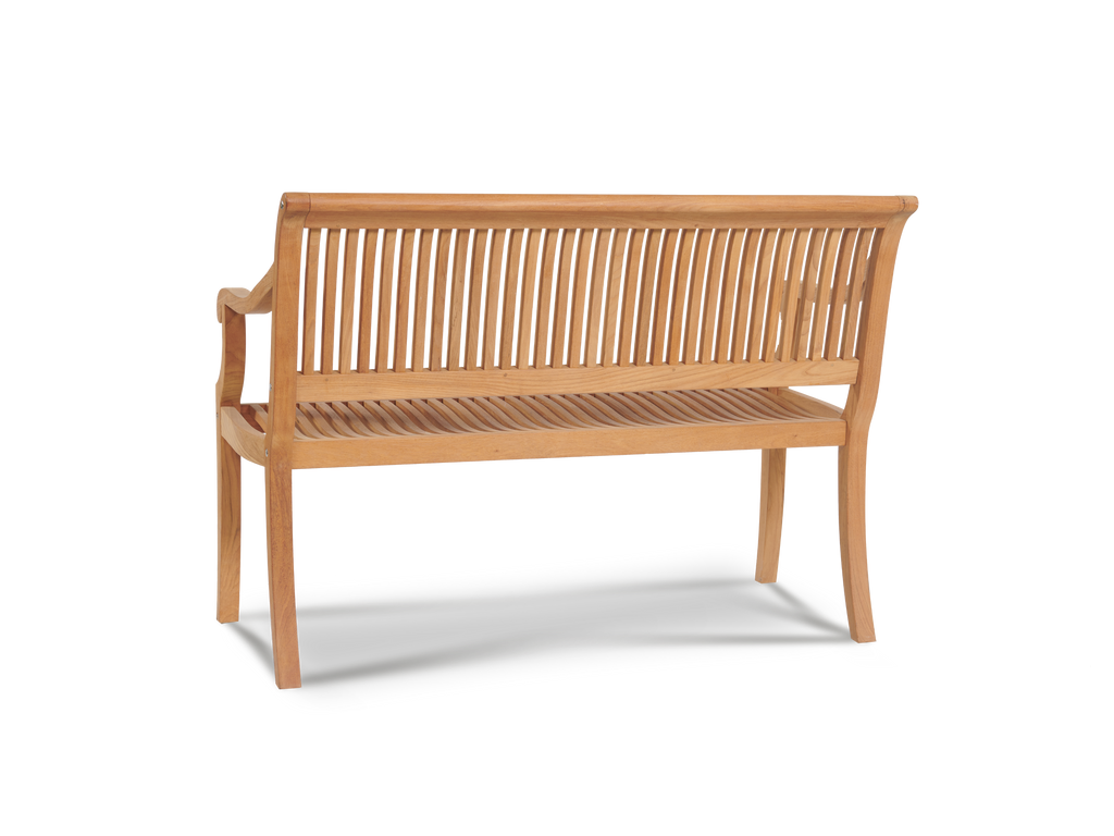 The Palm Bench will add simple elegance to any outdoor living space. Closely aligned slats are shaped in the seat and back for a great fit and feel. The rounded elements in the front rail create a distinct profile and make this bench even more comfortable.