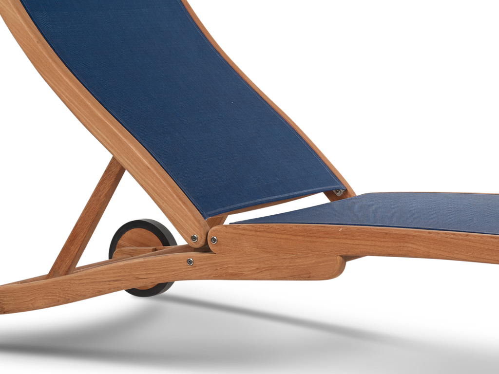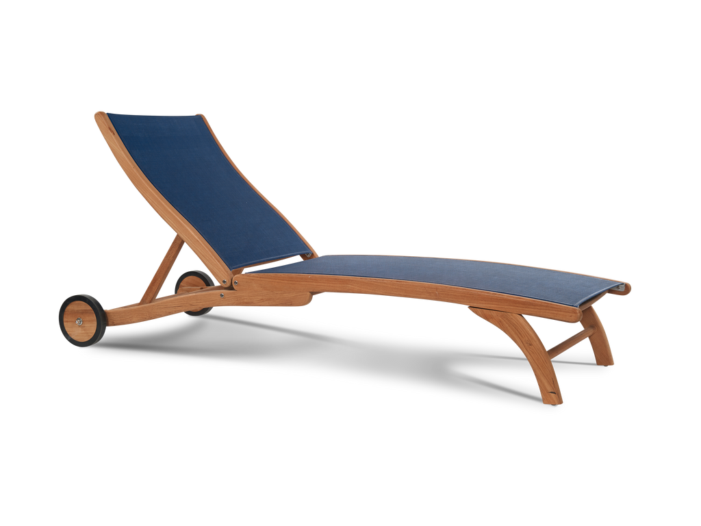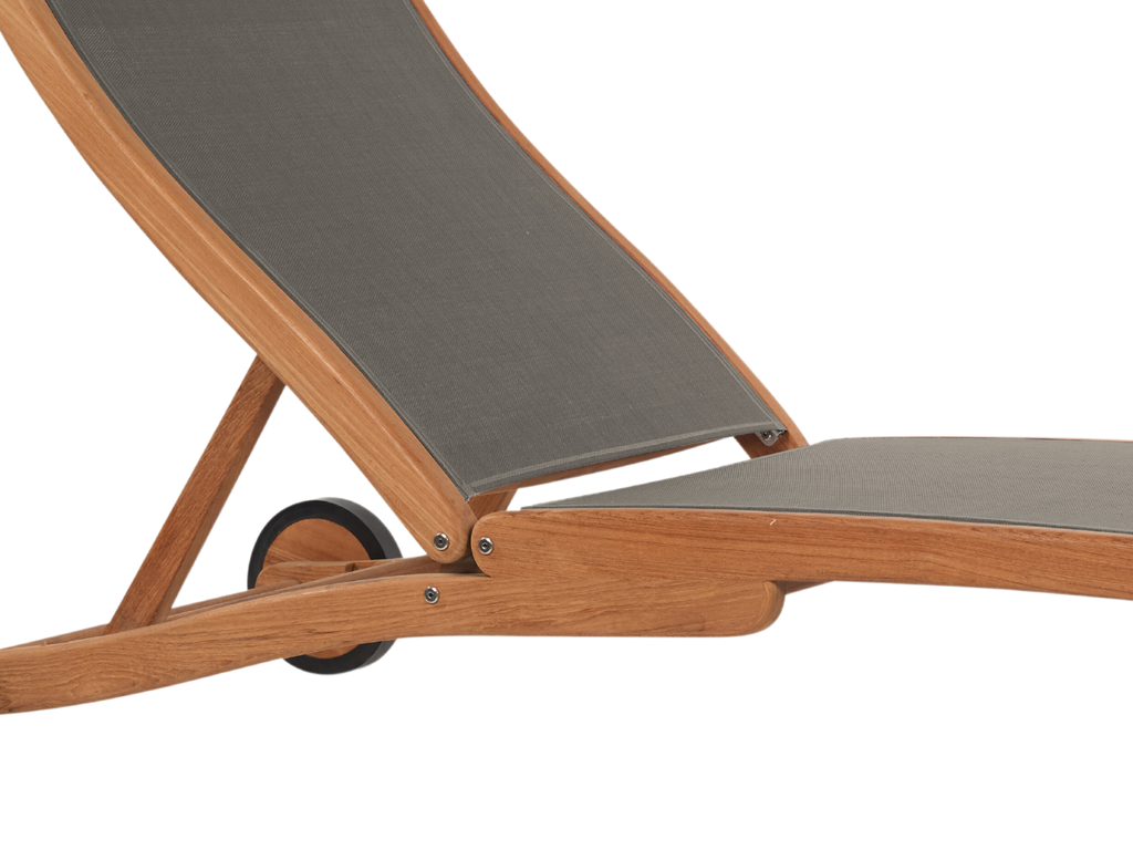 The Pearl Sunlounger is perfect for hot summer days on the deck or by the pool. The gracefully shaped frame made of premium teak is combined with a durable seat and back sling to provide comfort for hours. Rear wheels allow for easy position adjustment, and the five-position adjustable reclining back makes this the most comfortable lounger to relax on.