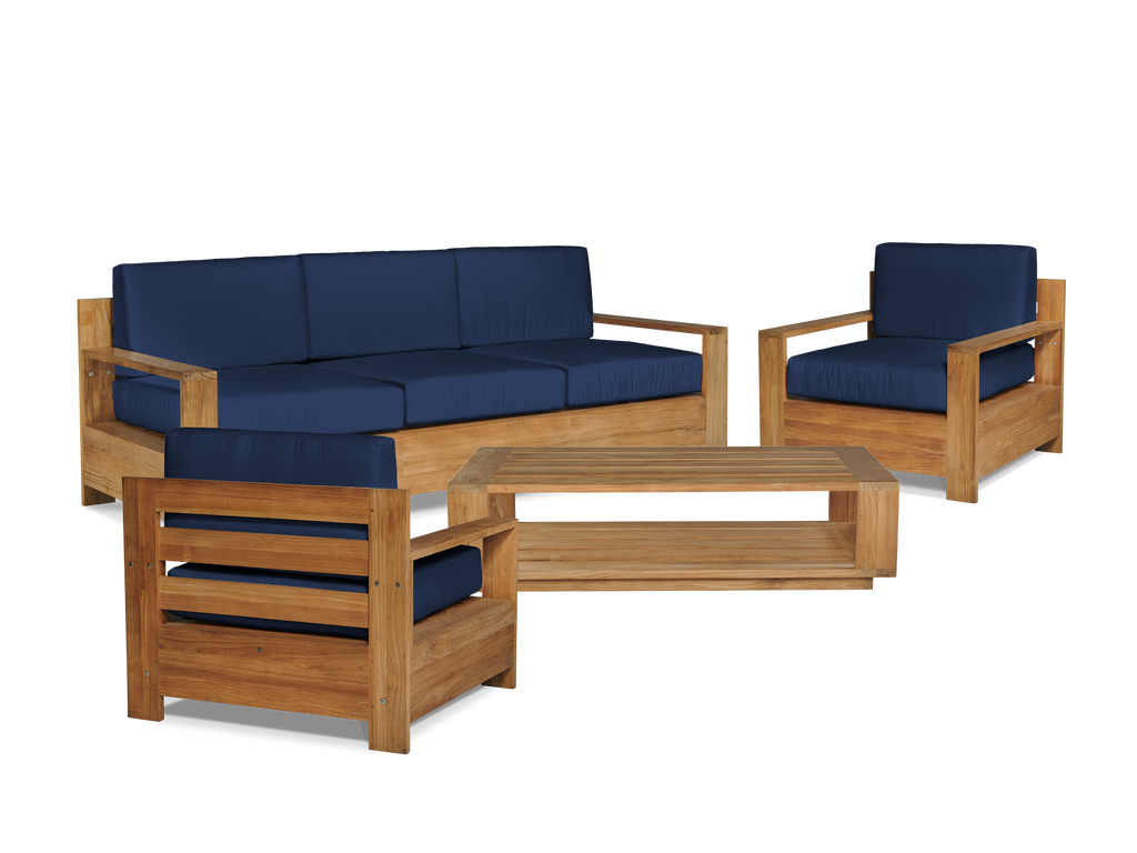 The Qube Coffee Table is one of our most substantial contemporary designs, featuring significant wide cuts of premium teak. With clean lines, straight angles, and oversized scale, this table can fill and elevate any sizeable outdoor living space or urban rooftop patio.