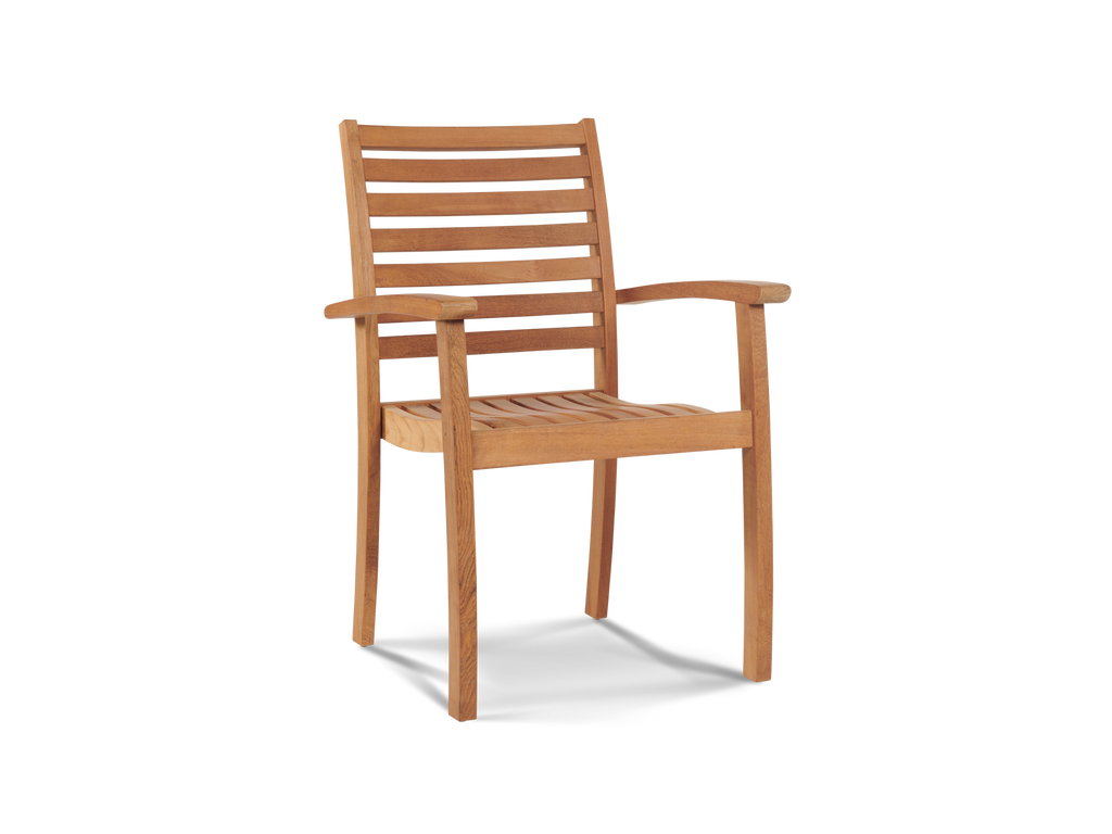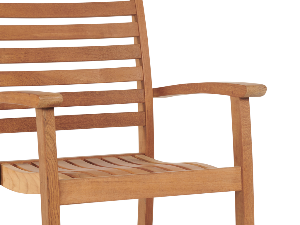 The Royal Stacking Armchair blends classic and contemporary styles with tall, slender legs and a slatted seat and backrest. The smooth armrests add comfort while complementing this straightforward design. Premium teak guarantees long-lasting durability with minimum maintenance.