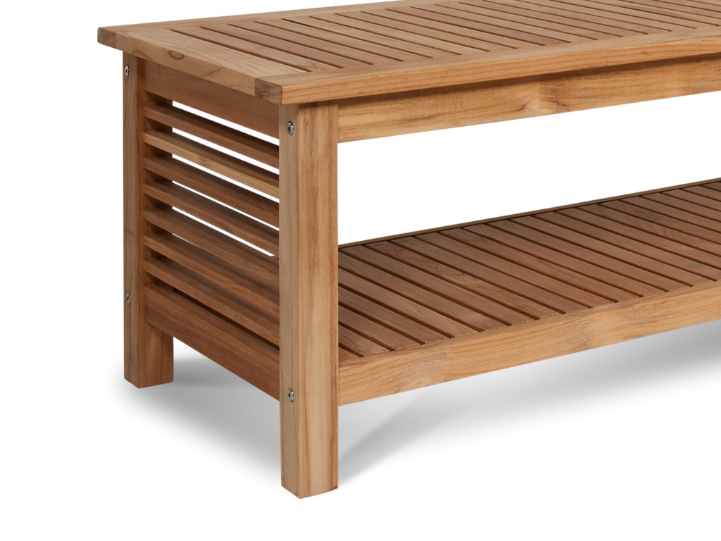 The Summer Coffee Table is designed with a distinctive look created by narrow premium teak slats and clean lines that give a modern and classic feel. This table is compatible with almost every outdoor living space; it is scaled for smaller patios and outdoor spaces as well, featuring the long-lasting qualities and superior construction of premium teak.